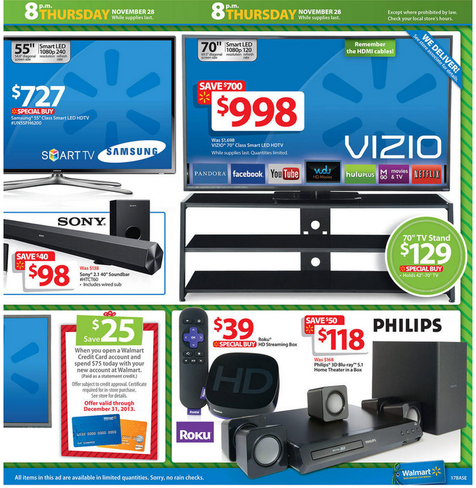Get Walmart Thanksgiving Sale 2013 Images. Walmart will open its stores at 6pm on this year's thanksgiving holiday, two hours earlier than last year, the company said on tuesday as us retailers last year walmart faced protests nationwide when for the first time it opened its doors on thanksgiving. Kmart thanksgiving day sale 2014 ad scan posted.